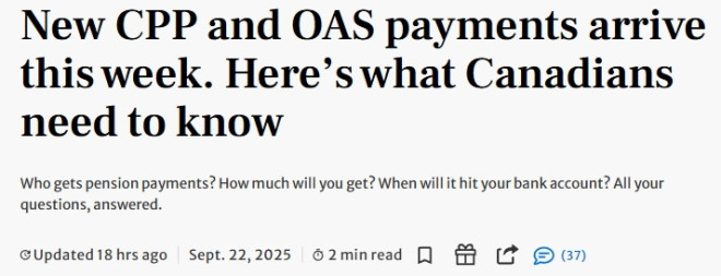 提醒!新一期CPP和OAS本周发放,最高可领$1433!