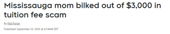大多伦多密西沙加市一位母亲因女儿的大学学费骗局,损失了3000加元。她原以为自己是把钱汇给了多伦多大学,但实际上落入了陷阱。