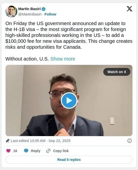 好的方面是,这一重大变化可能为加拿大提供一个机会,吸引高技能的 H-1B 专业人士到加拿大工作。