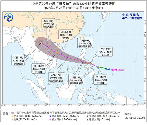 “博罗依”将于27日凌晨进入南海东部海域,之后向西北方向移动,强度逐渐增强,预计“博罗依”最强可达台风级,关注登陆或掠过海南岛的可能性。