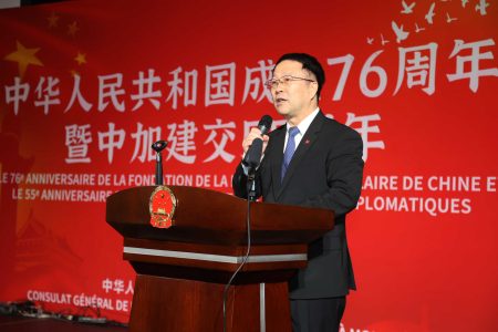 【時報訊】9月17日,駐滿地可總領事戴玉明出席總領館舉辦的國慶76周年招待會。國際民航組織理事會主席夏基塔諾、秘書長薩拉薩爾、中國駐國際民航組織理事會代表呂新明、魁北克省和滿地可市代表及領區友好人士、各國駐蒙領團、華僑華人、中資機構、留學生代表等500餘人出席。