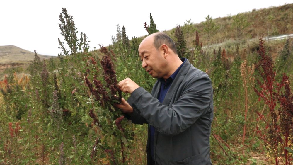巩亮军正在检查藜麦病虫害问题。新华社记者 张哲 摄