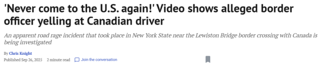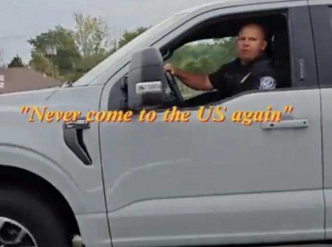 近日,一段39秒视频在社交媒体疯传,画面中一名疑似海关与边境保护局(CBP)官员,竟对一名加拿大游客大喊:“永远别再来美国!”