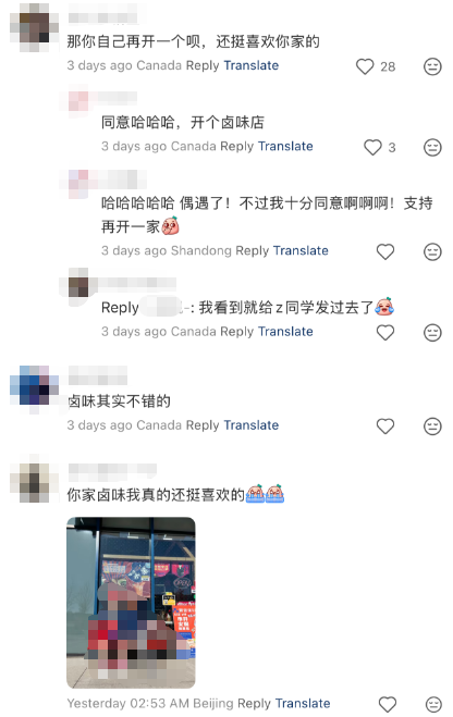 几位华人网友在该帖下方留言表示很喜欢贤合庄的卤味。