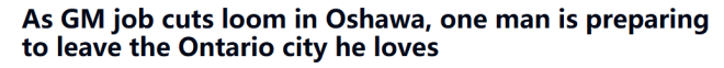 然而,当通用汽车加拿大公司在1月30日裁掉其奥沙华工厂的夜班时,福布斯也将失业。他认为自己很难在这座有18.5万人口的城市找到工作。这里是他出生长大的地方,他有四个孩子和七个孙子孙女都住在这里。