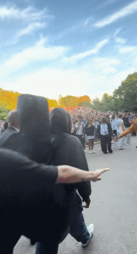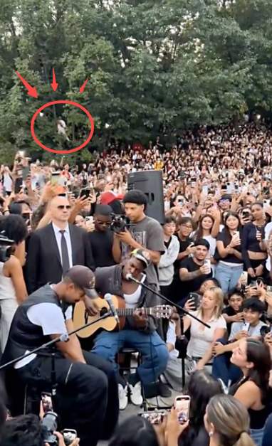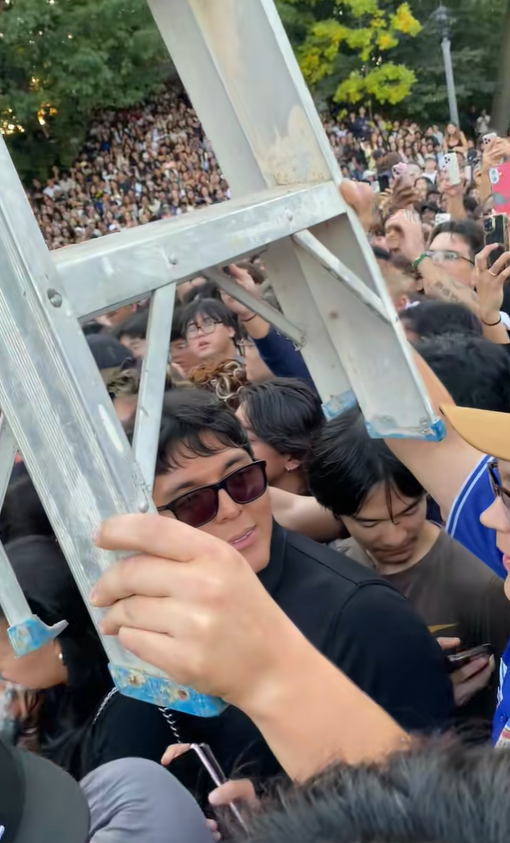 成千上万的粉丝将他团团围住,有人爬上树,有人站上长椅,有人甚至直接带来了梯子,希望Caesar能爬上去,好让整个公园的粉丝都能看到他。
