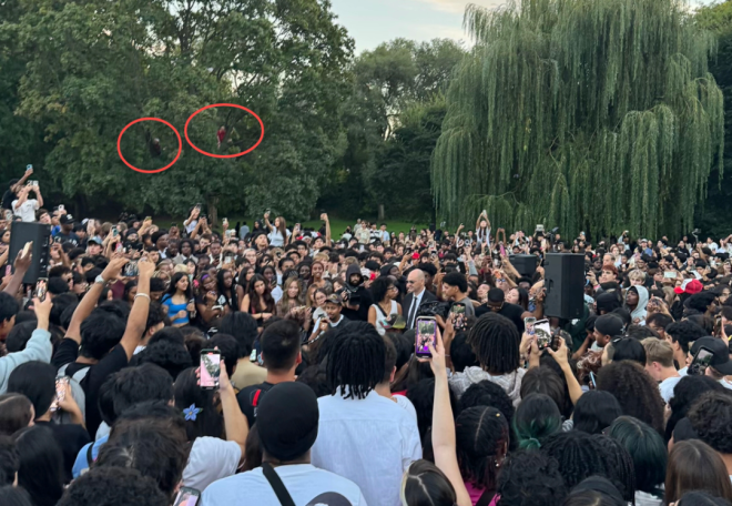 华侨网 加国新闻 多伦多数千人挤爆公园”免费快闪”: 爬树扛梯子疯狂抢位 只为看他