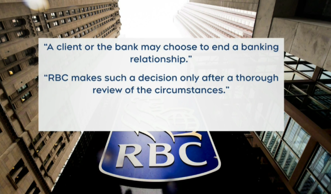 CTV新闻代表Nassab联系了RBC,发言人在声明中表示:“客户或银行都有权选择结束银行业务关系。对于RBC来说,只有在对情况进行全面审查后,才会做出这样的决定。如果银行决定终止银行关系,我们会在过渡期间与客户合作,并给予他们充足时间安排其他银行业务。”