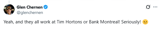 “他们都在Tim Hortons或者BMO银行工作!(认真脸)”