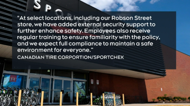 声明还提到,包括Robson街在内的一些门店,已经额外引入了外部保安,并会定期对员工进行培训,确保他们熟悉并遵守相关政策。