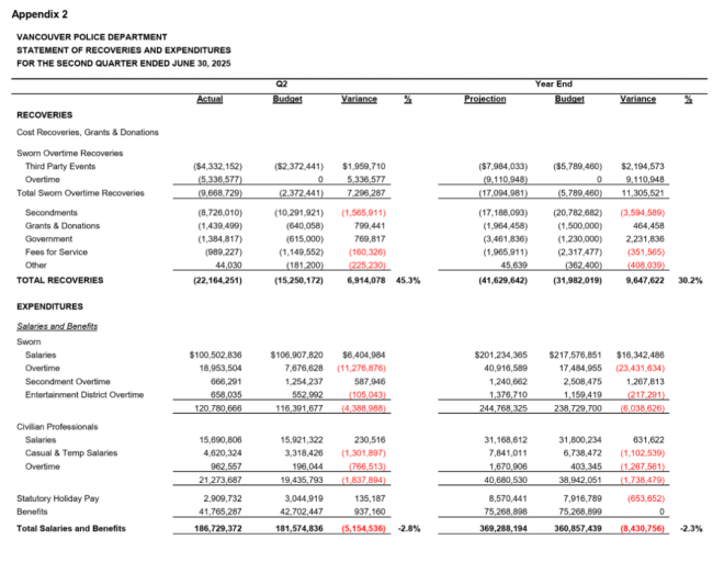 然而,维持这一下降趋势代价高昂:仅第二季度,警局预算已超支$500万元,全年预计超支将达$793万元,其中大部分用于支付警员加班费用。