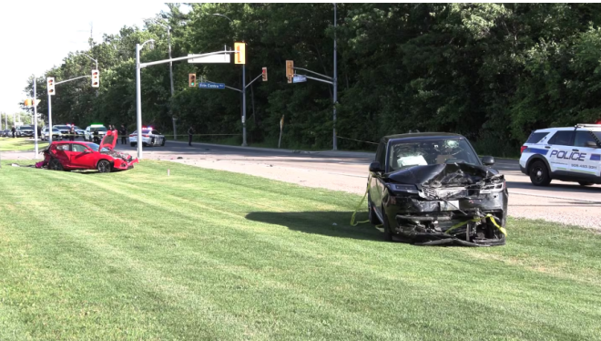 当天下午4点过后,在Ninth Line与Erin Centre Boulevard附近,路虎撞上了一辆本田思域,车上共有五人。