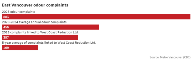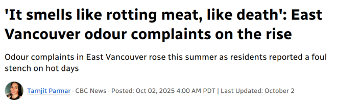 近日,大温地区管理部门对此作出回应,称臭味的源头可能来自附近的多家工厂:一家禽类加工厂、两家海鲜处理厂,以及一家名为West Coast Reduction Ltd.的大型动物副产品加工厂。