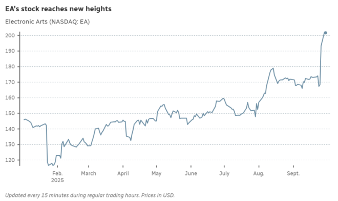这笔交易由Silver Lake Partners、沙特阿拉伯主权财富基金PIF,以及由特朗普女婿经营的Affinity Partners共同参与。他们将以每股$210元的价格买下EA的全部股份。