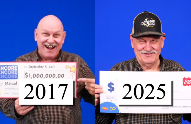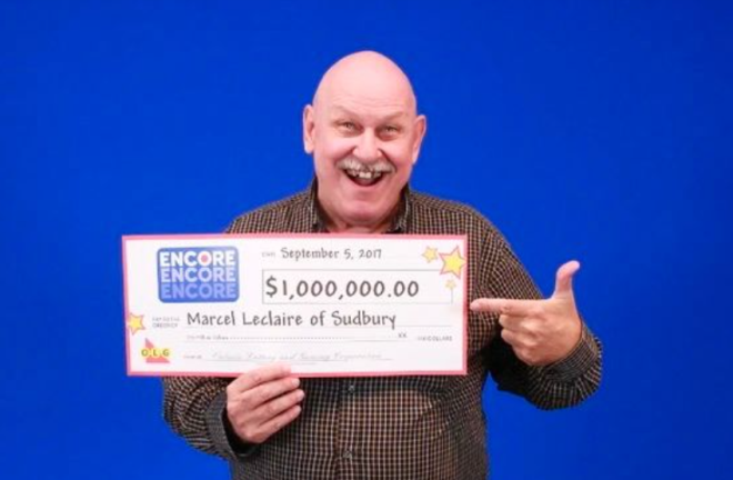2017年,来自安省萨德伯里(Sudbury)的Marcel Leclaire在下班时,临时决定为9月2日的Lotto 6/49开奖购买了一张附加Encore的乐透彩票。