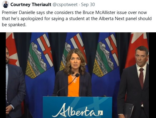 省长Danielle Smith也出席了当天的座谈会。她在周二的记者会上被问及此事时称,这番话“确实不当”。