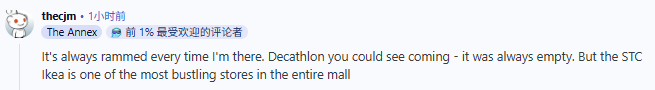 “每次我去那里都人满为患。迪卡侬(关门)早就能预料到——它总是空荡荡的。但宜家可是整个STC商场最热闹的店铺之一。”