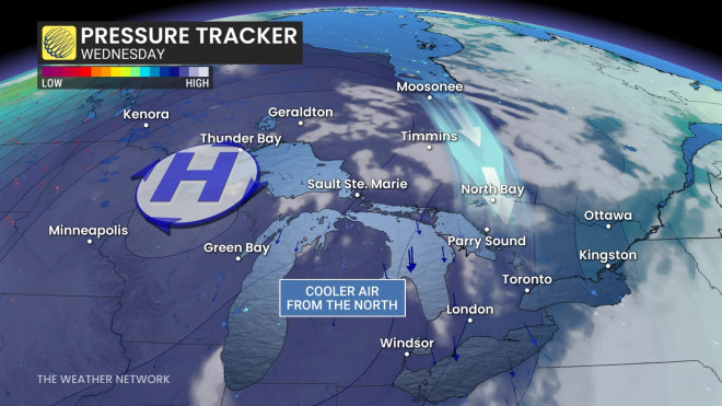 自周三起,一股更冷的气团将覆盖安省,全省气温将回归十月正常水平,白天气温普遍在10至15℃之间。