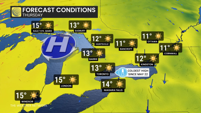 预计周四多伦多最高温仅13℃,将成为自5月22日以来的最低白天温度(长达137天未见)。