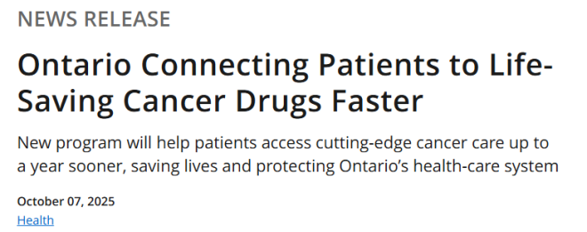 安省卫生厅宣布: 加快批准新型抗癌药! 能提前一年拿药救命!