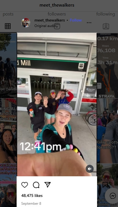 他们对“徒步暴走”的热爱也开始在社交媒体上蔓延开来。他们发布在TikTok和Instagram上的视频获得了近5万个点赞,还不断有人私信他们,希望能加入下一次的暴走行程。