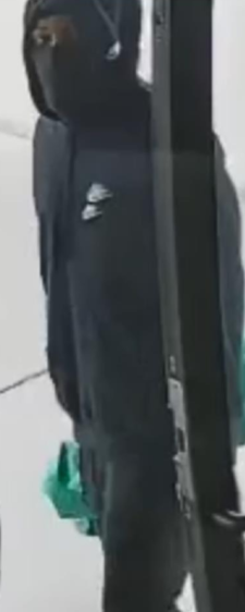 嫌疑人2: 男性,黑人,身穿黑色连帽衫,黑色裤子,黑色鞋子,戴着黑色面罩。