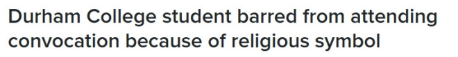 一位锡克裔学生至今仍未拿到他在Durham学院的毕业证书,因为在毕业典礼当天,他佩戴锡克教仪式短剑(kirpan),被安保人员拦在门外,结果未能参加自己的毕业典礼。