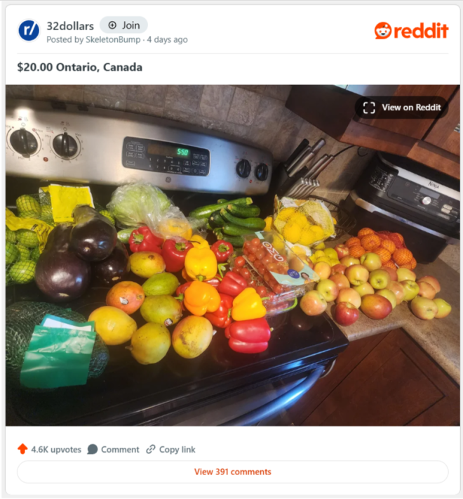 最近,Reddit 用户 SkeletonBump 分享了一张他在当地 Real Canadian Superstore 购买的农产品的照片。