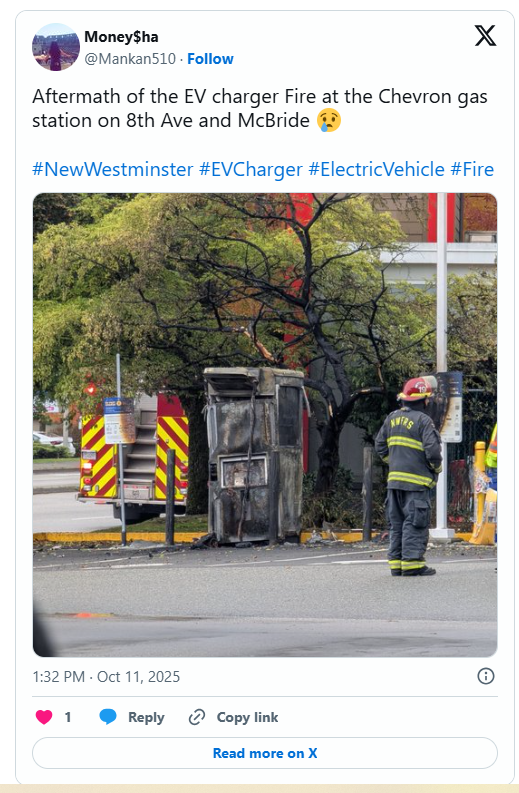 EV Charging Station On Fire #NewWestminster @CityNewsVAN @NewsRadioVAN pic.twitter.com/u0iGTpnS15
