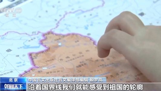 中國盲文出版社盲文編譯部編輯 殷夢嵐:讓我感受到祖國幅員遼闊,從小就聽人說祖國的地圖,像一隻雄雞在東方報曉,我這次深深體會到了雄雞的樣子是什麼樣的。首先我們可以摸到比較粗的線條代表的是國界,沿着國界線我們就能感受到祖國的輪廓,感受到祖國的範圍非常廣闊,不是很連續的線條代表的是海岸線,我們在圖上也可以摸到祖國的海岸線也是非常長的。