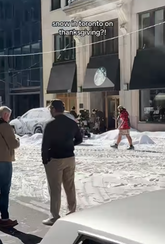 在刚刚过去的感恩节长周末,多伦多市中心突然被厚厚“白雪”覆盖的画面让不少市民惊掉下巴。就在大家还沉浸在金秋十月的温暖阳光里,街头巷尾却一夜“银装素裹”,仿佛提前入冬……