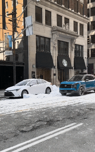 别担心,多伦多的秋天还没跳票。这场“降雪”其实是日产(Nissan)为拍摄新广告而特别搭建的“冬季场景”,一切都是人工造雪。