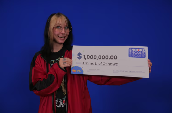 安省奥沙瓦居民Emma Little在同事中奖的启发下买了第10张,结果幸运赢得了100万加元大奖。