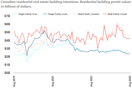 值得注意的是,該板塊在2024 年 12 月達到峰值,而 2025 年 8 月的水平較峰值下滑28.7%(減少 16.9 億加元)——儘管政府仍在推動大量“專建租賃住房”補貼計劃。