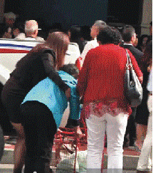 ▲2016年5月15日,一女“弟子”聽完李洪志“講法”後栽倒在地