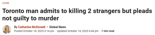 多伦多男子埃德温(Richard Jonathan Edwin)周二在多伦多法庭上承认,自己在2022年4月的两天内,在毫无挑衅、完全随机的情况下枪杀了两名陌生人。但他以精神疾病为由,对两项一级谋杀罪提出不认罪抗辩。