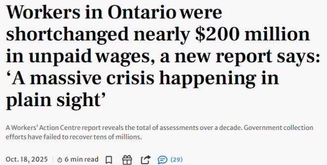 维权组织表示,过去十年,安省工资追讨系统严重失灵——罚款少、检查少、执法弱,制度早已落后于现实。