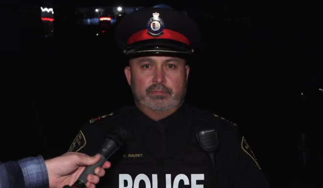 警官Richard Gaudet在凌晨3点左右接受CP24采访时表示,凶杀组已接手调查。