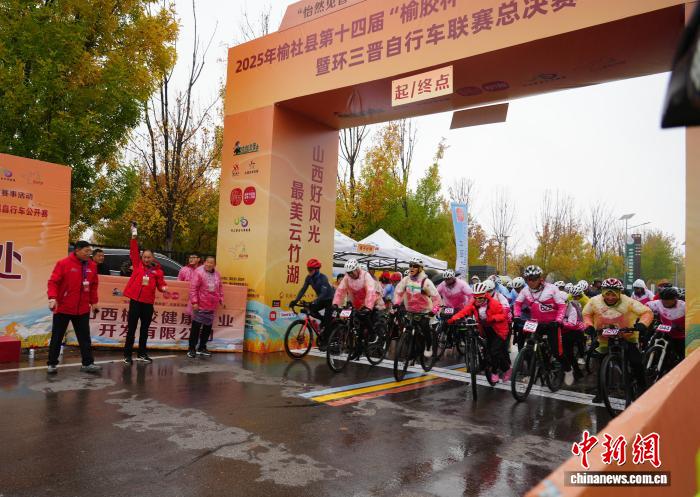 晋中10月20日电 (高雨晴)一场融汇自然之美与体育精神的盛事——第十四届“榆胶杯”环云竹湖自行车公开赛暨环三晋自行车联赛总决赛19日在山西榆社云竹湖举行。500余名选手齐聚云竹湖畔,于蒙蒙细雨间进行速度与激情的巅峰对决。