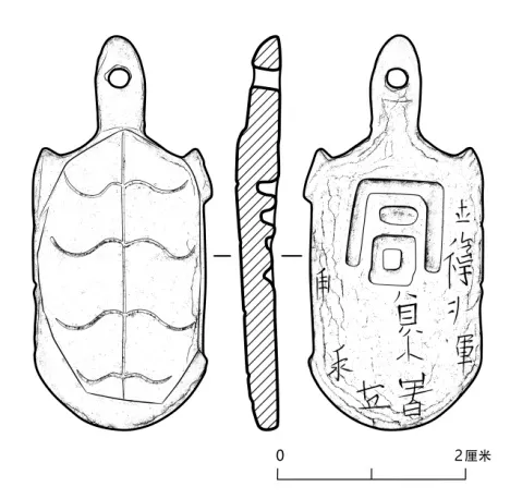1981年,这枚铜龟符在焉耆回族自治县博格达沁古城被发现。龟背上刻着纹路,头部留有小孔,腹部还环绕刻着一圈铭文:“右玉钤卫将军员外置阿史那伽利支”,中间嵌着一个“同”字。经学者考证,这位将军正是唐朝西域名将阿史那忠。