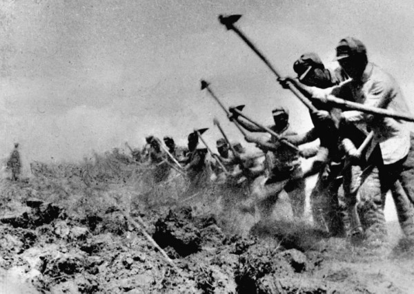 八路军三五九旅在南泥湾开荒生产。