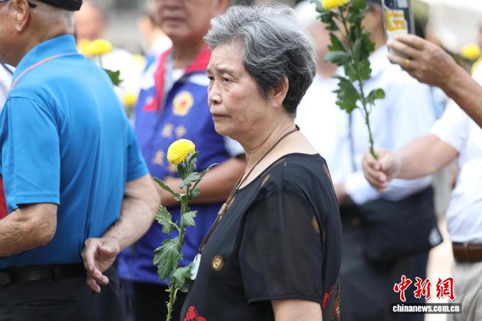 2025年9月3日是抗战胜利纪念日,台湾民间团体当天在台北市中山堂广场举行抗战胜利80周年纪念活动,缅怀先贤的牺牲奉献,呼吁正视历史、珍爱和平。图为台湾抗日志士罗福星的孙女罗秋昭出席活动,向抗战中牺牲的军民同胞敬献鲜花。 中新社记者 朱贺 摄