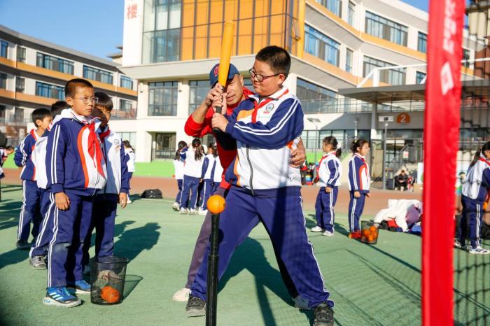 活动中,学生们在体验中主动给自己设定目标,克服困难、突破自我。运动环节里,孩子们充分体验了棒垒球的打、传、跑等所有基本技能;现场的文化展示区,则让他们清晰了解了垒球的基本概念。“平常体育课就有棒垒球活动,虽然击球有难度,但传接球最让人开心,接到球的瞬间特别有成就感,今天我还学会了正确姿势,技能也提高了。” 四年级学生郑家骏说道。