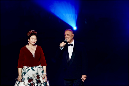 這是民族女高音歌唱家黃顯淑慈善獨唱音樂終曲《我愛你中國》的最初兩句和最後兩句,高度概括了海內外中華兒女對祖國母親的崇敬,讚美和依戀,表達了將壯麗青春奉獻祖國的赤子之心。由民族女高音歌唱家黃顯淑,著名女高音歌唱家許倩,國家一級演員、男高音歌唱家劉建軍,魁北克男高音歌唱家馬里奧.西馬爾聯袂演唱,E1sa舞蹈藝術學校枝枝舞蹈隊伴舞,徐智小提琴教學研究室和三佳國際教育學院加盟演出,表達了對祖國母親大海般的深情,將現場觀眾情感的波瀾推向最高潮,收獲了陣陣歡呼和掌聲。