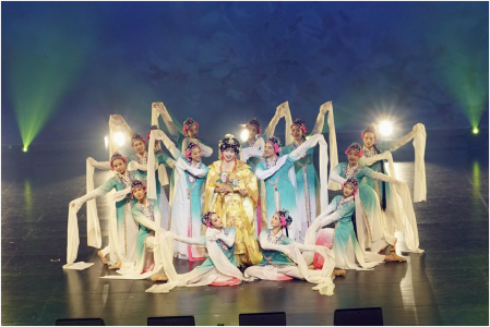 黃顯淑選取中國民歌經典《好一朵美麗的茉莉花》作為音樂會開場曲目,獨具匠心,意義非凡。眾所周知,這首家喻戶曉耳熟能詳的江蘇民歌,曾以獨特的很中國的優美旋律,被世界級音樂大師普契尼寫進自己的經典歌劇《圖蘭朵》中。Elsa舞蹈藝術學校一群年輕靚麗的演員仿佛一群仙女下凡,讚美著家鄉美麗的茉莉花。
