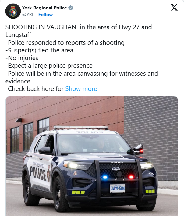 第一起枪击事件发生在Highway 27和Langstaff Road.附近。