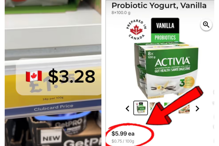 Tesco 的一包酸奶售價為 1.75 英鎊(3.28 加元),而 Loblaws 的一包酸奶售價為 5.99 加元。