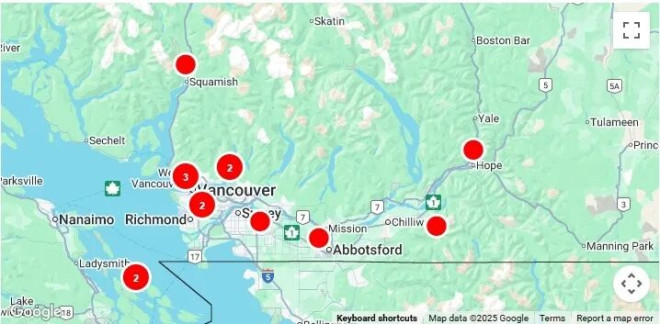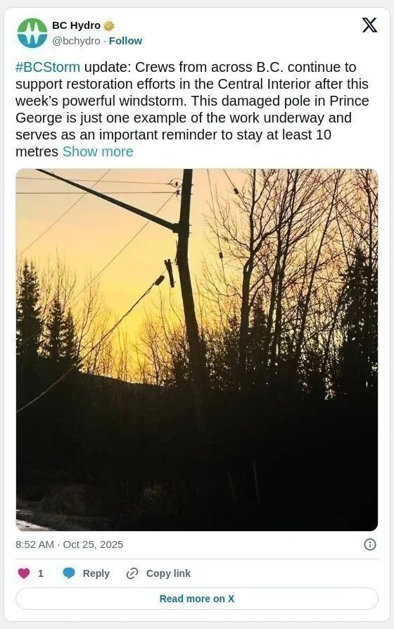 周六中午前后,BC省南海岸报告了少量停电事故。在此之前,该地区数以千计的居民在周五的风雨交加天气中断电。