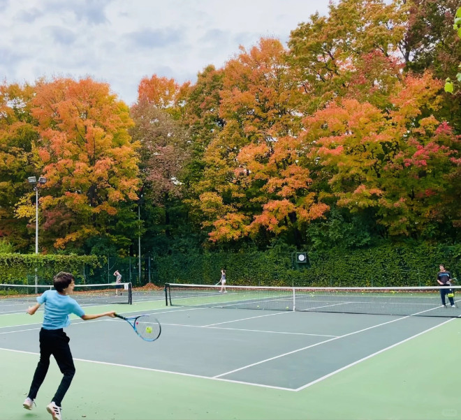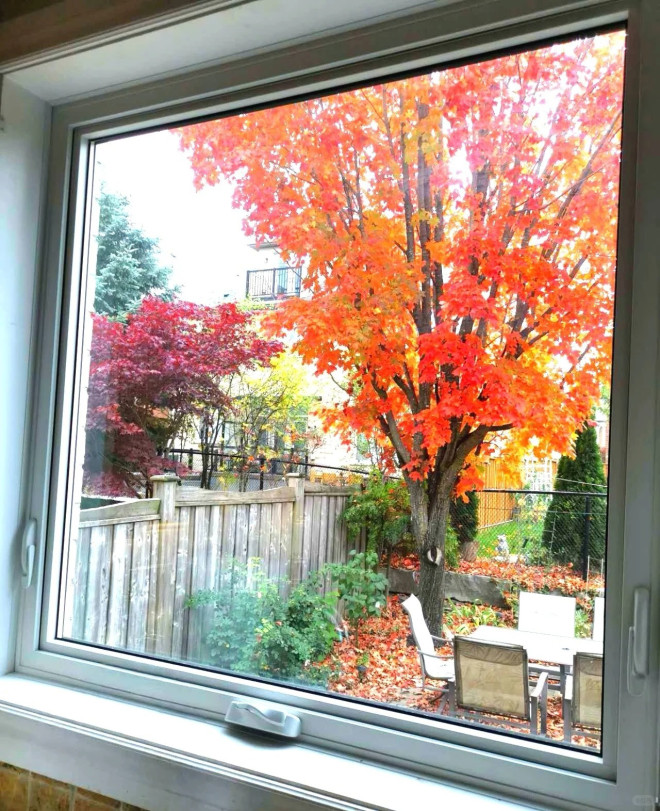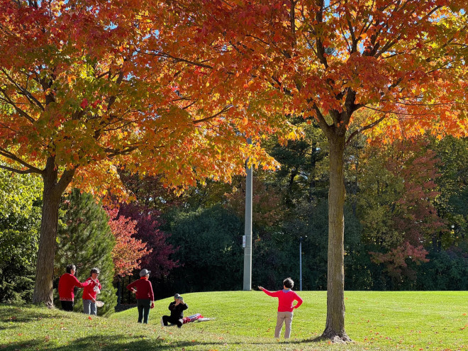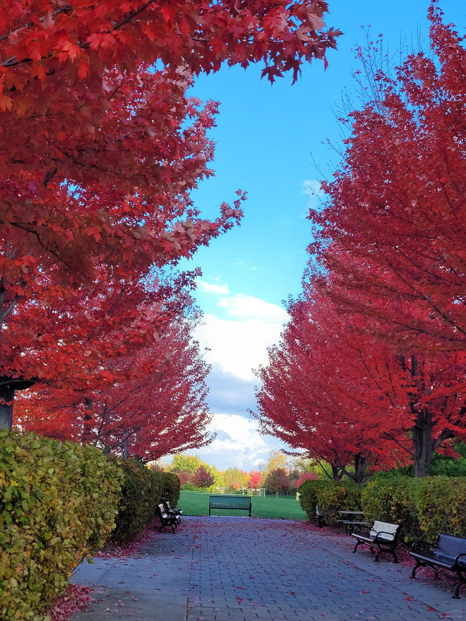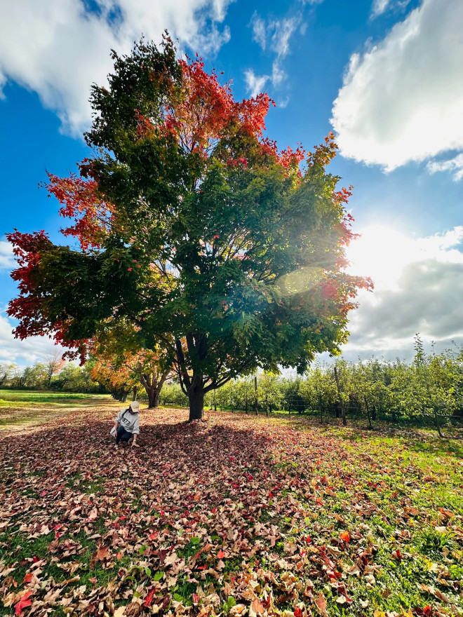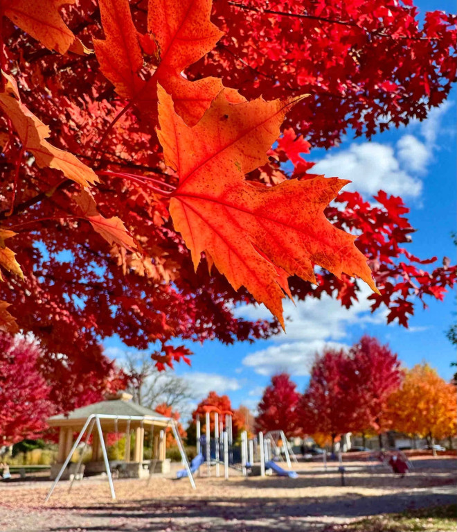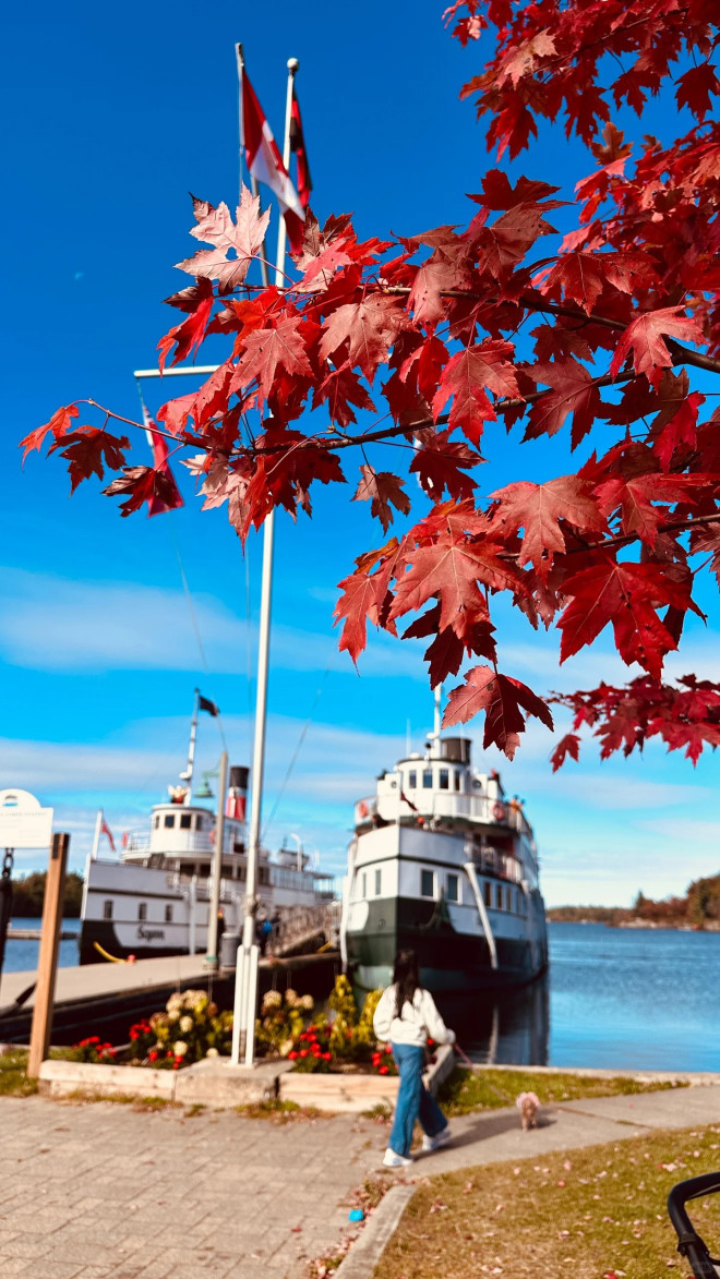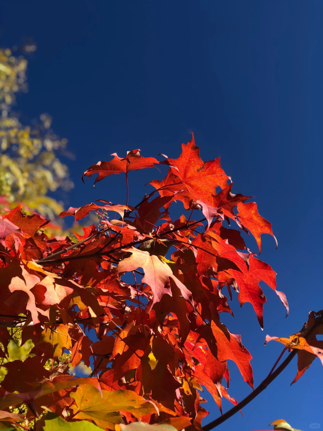 2.枫向标🍁vivian小超人–枫叶下的碧海蓝天和遛狗的娃