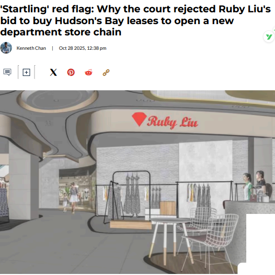 其中最具价值的资产是全国39份门店租约。这部分资产吸引了超过10份竞标,出价最高者为刘伟宏,她计划收购其中28份租约,并以此打造名为“Ruby Liu”的新百货品牌。